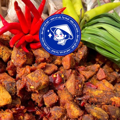 Khô bò được làm 100% từ bò tươi. Bếp làm từ tảng thịt bò to, mềm, tươi ngon được cắt cục vuông nên thành phẩm là những viên bò khô cục vuông tẩm ướp gia vị hài hoà, cay mặn ngọt hoà quyện vào nhau nên ăn rất ngon.