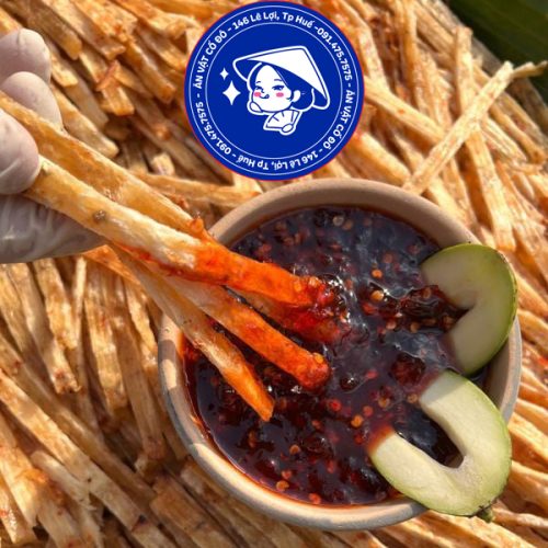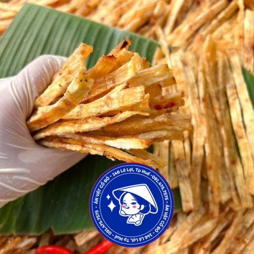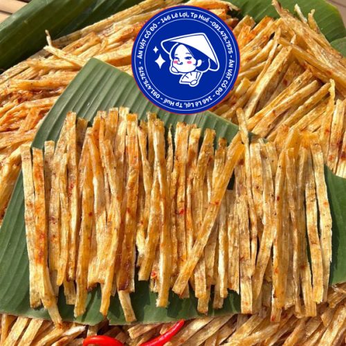 KHÔ CÁ THIỀU tẩm gia vị cắt sợi dài, màu vàng, được tẩm gia vị ăn liền nên nhìn rất hấp dẫn.Món ăn này được chế biến từ phi lê cá thiều tươi vừa mới đánh bắt và được phơi khô cán mỏng để gia vị thấm đều hơn.