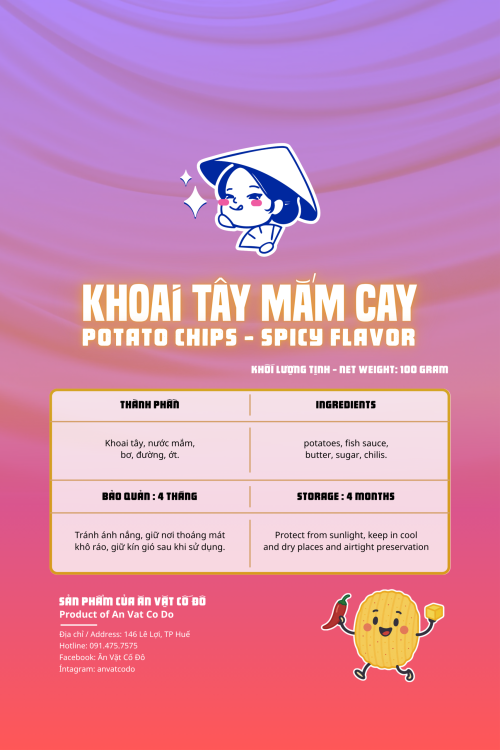 Thành phần: Khoai tây, nước mắm, bơ, đường, ớt