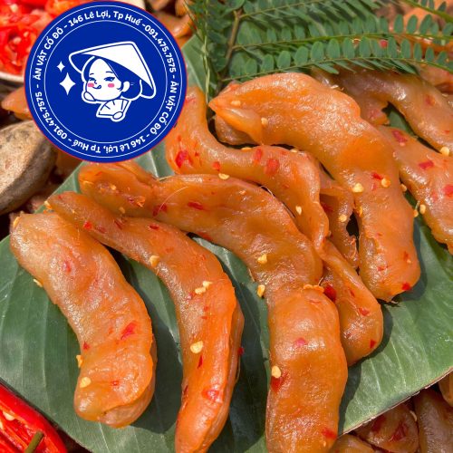 Thành phần: Da heo, muối, ớt, đường, hành và các gia vị khác