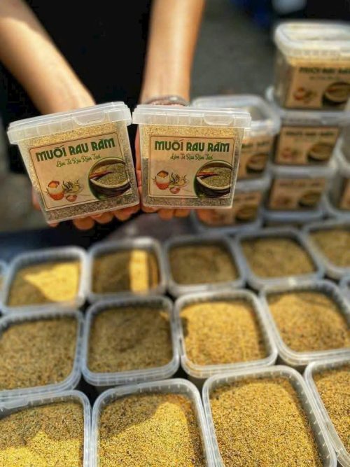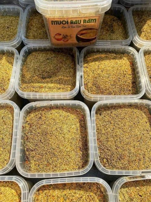 Muối rau răm là sự kết hợp giữa vị mặn của muối mà lá rau răm, tạo nên món thức chấm độc đáo. Với sự kết hợp hài hòa giữa mùi thơm nồng của tiêu.